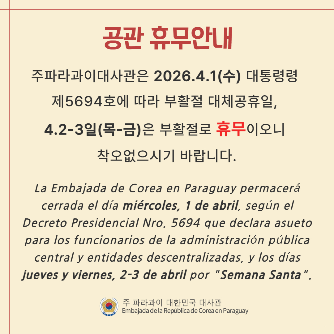2026 부활절 성주간(Semana Santa) 휴무 안내